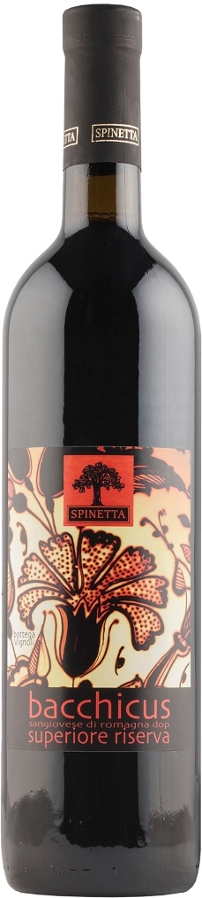 Cantina Spinetta, Bacchicus, Romagna, Sangiovese Superiore Riserva — роскошное красное сухое вино, созданное из винограда сорта Санджовезе. Ягоды произрастают на виноградниках хозяйства, расположенных на холмах Faenza. По окончании сбора урожая плоды подвергаются мягкому прессованию с последующей ферментацией, проходящей со строгим температурным контролем в стальных резервуарах. Выдерживается вино в течение 18 месяцев в барриках из французского дуба. Перед поступлением в продажу. вино дополнительно выдерживается 12 месяцев в бутылках в погребах винодельни.