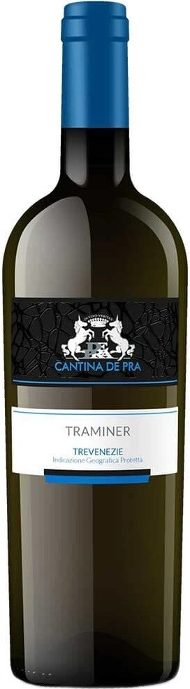 Cantina de Pra, Traminer — ароматное белое сухое вино из винограда сорта Траминер, который выращивается в самом сердце района Тревизо, между муниципалитетами Ормелле, Понте-ди-Пьяве и Мотта-ди-Ливенца. Урожай собирается с середины сентября вручную в небольшие ящики. На винодельне виноград подвергается непродолжительной холодной мацерации. Полученный после прессования и статической декантации чистый сок ферментируется при контролируемой температуре. Вино хорошо сочетается с белым мясом, рыбой-гриль, салатами с авокадо, блюдами азиатской кухни.