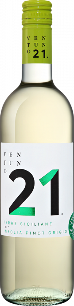 Ventuno 21, Inzolia-Pinot Grigio — идеально освежающее, хрустящее белое сухое вино с прекрасными фруктовыми оттенками во вкусе и аромате. Виноград сортов Инзолия и Пино Гриджио для его изготовления выращивается в регионе Венето на северо-востоке Италии. Виноградники Венето расположены на равнинах, холмах и в предгорьях. Климат и почвы региона разнообразны и варьируются в зависимости от местоположения. Собранный и тщательно отсортированный виноград бережно прессуется. Алкогольная ферментация проходит в емкостях из нержавеющей стали при контролируемой температуре. Перед розливом по бутылкам вино фильтруется.