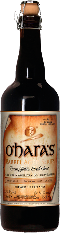 В основе "О'Харас" Линн Фоллейн Серия Баррель Эйджд лежит великолепный ирландский стаут "O'Hara's" Leann Follain, подвергнутый трехмесячной выдержке в бочонках. По ее окончании напиток доводится до оптимального уровня карбонизации при помощи вторичного дображивания в бутылке. Полученное в результате пиво покоряет гладкостью и многогранностью вкуса, его деликатной солодовой сладостью и приятной горчинкой 40 IBU. Тона бурбона отлично прослеживаются по всей длине глотка, придавая послевкусию особую теплоту и продолжительность.