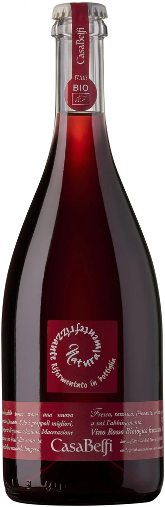 Casa Belfi, Naturalmente Frizzante Rosso — свежее и яркое игристое вино из винограда сорта Рабозо, название которого в переводе с итальянского означает "бешеный", что как нельзя лучше характеризует энергичность и драйв напитка. Виноград культивируется с упором на органические и биодинамические принципы ведения сельского хозяйства. Виноградники располагаются на высоте 100 метров над уровнем моря на каменистых известково-гравийных почвах. Урожай собирается по достижении ягодами оптимальной спелости, очищается от стеблей, мягко прессуется и подвергается мацерации на кожице. Естественная ферментация с натуральными дрожжами без температурного контроля и выдержка вина в течение 6 месяцев протекают в стальных чанах. Затем игристое вино розливают по бутылкам и начинается естественная вторичная ферментация, превращающая остаточный сахар в спирт и углекислый газ. Дегоржаж (извлечение осадка из бутылки) не осуществляется, поэтому на дне бутылки остается натуральный осадок.