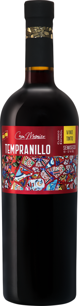 Casa Mosaico, Tempranillo Semiseco — свежее и сочное красное полусухое вино из винограда сорта Темпранильо, выращенного в Испании. Темпранильо — один из самых представительных красных сортов винограда Испании, ее "визитная карточка". Именно вино из Темпранильо позволит постичь суть местного терруара. Собранный виноград сортируется и очищается от гребней. Винификация проходит по традиционному для красных вин методу. Сброженное сусло транспортируют в Беларусь, где на Минском заводе виноградных вин осуществляется бутилирование с помощью технологии холодного розлива. Фильтрация через стерильные фильтры гарантирует защиту от вредных микроорганизмов. Отсутствие термической обработки позволяет сохранить сортовую идентичность Темпранильо и свежий вкус винограда в вине.
