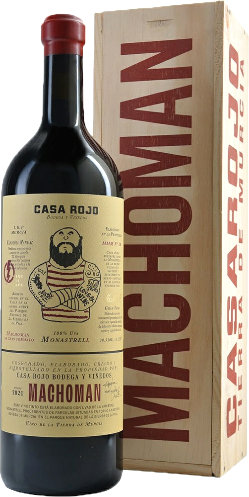 Casa Rojo, MachoMan — мускулистый Монастрель, воплощение мужественности региона Мурсия. 100 000 кг Монастреля поставляется ежегодно с 45 гектаров виноградников возрастом от 7 до 80 лет. 70% участков находятся в собственности компании Casa Rojo, а 30% арендуются. Все они расположены в окрестностях винодельни, в долине Ла Раха. По завершении традиционной винификации вино выдерживается 12 месяцев в бочках из французского и американского дуба.