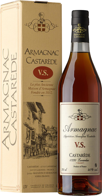 Castarede VS — арманьяк трехлетней выдержки. В его составе — смесь спиртов, полученных путем перегонки вин из винограда сортов Коломбар, Фоль Бланш и Уни Блан. Влажный климат и песчано-илистая почва региона — идеальные условия для производства лучшего арманьяка в мире. Процесс старения происходит в бочках из черного Гасконского дуба. Древесина этого дуба в два раза богаче танинами, чем Лимузенский дуб, и в три раза богаче, чем американский.