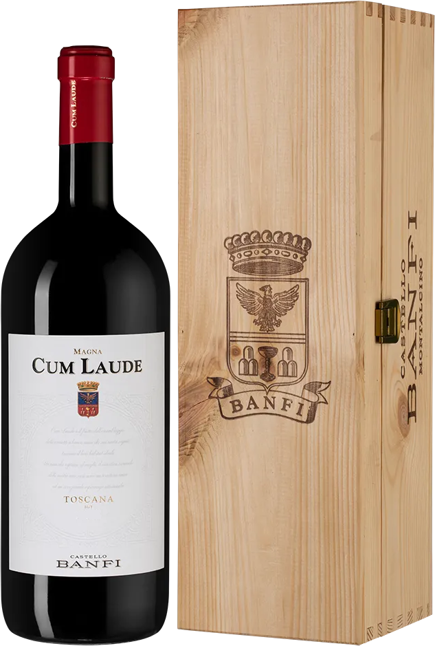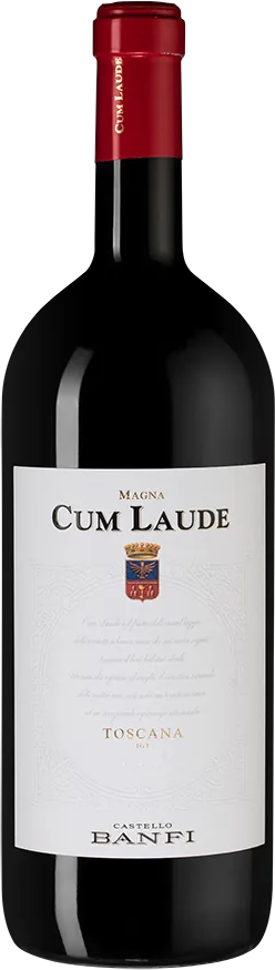 Castello Banfi, Cum Laude — самое новое вино высшей категории "Супер Тоскана" от Банфи. "Cum Laude" на латыни означает "с отличием". Вино производится из четырех красных сортов винограда, которые отбирались на протяжении 25 лет исследований. Впервые вино "Кум Лауде" было изготовлено в 1999 году. Это очаровательное красное вино, подходящее для сложных гастрономических сочетаний и неофициальных случаев. Сбор урожая для производства этого вина начинается в сентябре. Затем все 4 сорта винограда винифицируют по отдельности. Мацерация происходит при достаточно низкой (14°С) температуре в течение 2-х дней, ферментация длится неделю при более высоких температурах в стальных и дубовых чанах. Яблочно-молочное брожение и выдержка вина в течение 14 месяцев проходит во французских дубовых бочках, а затем еще полгода в бутылках. Потенциал хранения вина составляет 8-12 лет.