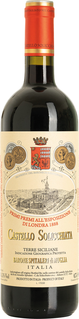 Castello Solicchiata — восхитительное красное вино, изготовленное из выращенных на Сицилии международных сортов винограда: Каберне Совиньон, Каберне Фран и Мерло. Лозы культивируются на юго-западном склоне вулкана Этна на высоте 800 метров над уровнем моря. Террасные виноградники с молодыми лозами разбиты на вулканической почве, образовавшейся в результате застывших потоков лавы на Этне. Урожай собирается вручную. Винификация проходит в дубовых чанах усеченной конической формы. Затем вино два года выдерживается в барриках из французского дуба (Алье и Тронсе) и 4-5 лет в бутылках.