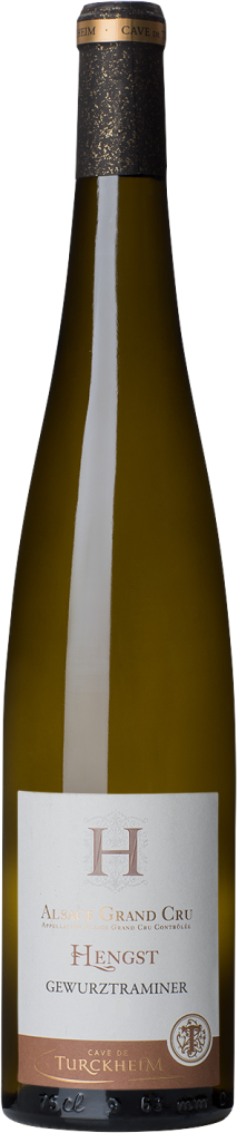 Cave de Turckheim, Gewurztraminer Grand Cru, Hengst — свежее полусладкое вино, искрящееся динамичными фруктовыми оттенками. Виноград сорта Гевюрцтраминер для изготовления вина выращивается на престижном винограднике "Хенгст" класса Гран Крю. Этот виноградник, имеющий юго-восточную экспозицию, простирается на довольно крутом склоне. Геологическое строение склона, состоящее из олигоценовых конгломератов и известкового мергеля, дает очень богатые почвы, которые придают вину твердый, сильный, крепкий характер. Потенциал вина составляет 5-7 лет.