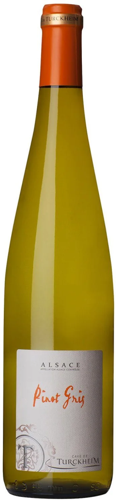 Cave de Turckheim, Pinot Gris, Alsace — именно такое деликатное вино с тонким цветочным букетом. Виноград собирают на виноградниках с разнообразными почвами, состоящими из известняка, гранита, гравия, мергеля и песчаника. Это привносит разные характеристики в общую смесь. Сбор урожая проводится как вручную, так и машинами в зависимости от месторасположения виноградника. Винификация традиционная, включающая пневматическое прессование, контролируемую ферментацию, отстаивание на осадке. Фильтрация проводится перед розливом. Выдерживается вино не более 12 месяцев в резервуарах из нержавеющей стали. Потенциал вина составляет 3-5 лет.