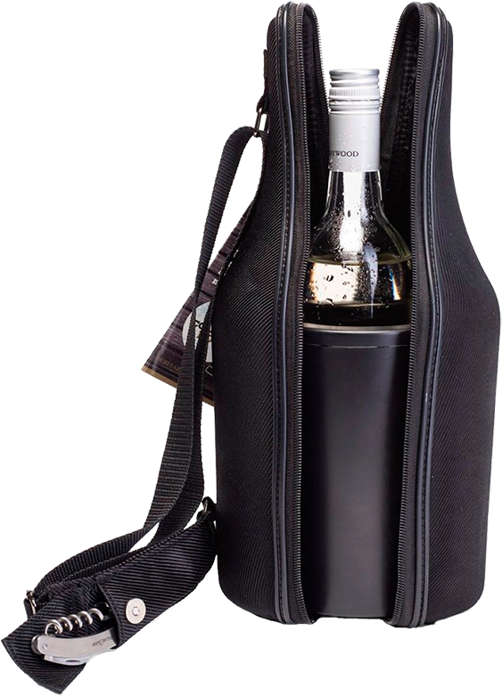 Он представляет собой сумку из неопрена на молнии в форме бутылки, вмещающую в себя охлаждающую колбу с хладогеном, в которую можно поместить вино в ёмкости до 750 мл. Имеет ремень для переноски в руке или на плече. Также оснащен специальным карманом, в котором хранится высокопрочный нож сомелье.