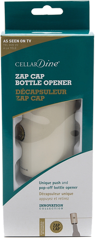 CellarDine, ZAP CAP Plastic Bottle Opener — аксессуар, который позволяет легко и эффектно открыть бутылку с пивом или другим напитком. Выполненный из прочного, практичного пластика, он имеет компактные размеры и отличается простотой применения. Достаточно надеть открыватель на горлышко бутылки и нажать. Специальный пружинный механизм без труда снимет крышку. Аксессуар можно рекомендовать для домашнего применения и в качестве презента близким людям.