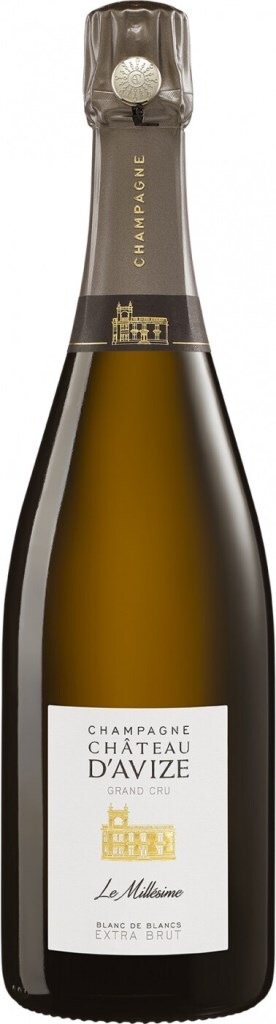 Champagne Chateau d'Avize, Le Millesime, Blanc de Blancs, Grand Cru, Extra Brut — изысканное шампанское, изготовленное из винограда сорта Шардоне, который выращивается на биодинамическом винограднике "Les Avats et Du Nord" с известково-меловыми почвами. Средний возраст лоз составляет 35 лет. Почвы обрабатываются с использованием лошадиной тяги. Урожай собирается вручную по достижении ягодами оптимального уровня зрелости. Алкогольное и яблочно-молочное брожение протекают в емкостях из нержавеющей стали (20%) и в дубовых бочках (80%). Шампанское выдерживается на осадке около 10 месяцев в дубовых бочках, а после розлива дозревает в бутылках еще 60 месяцев. Экстра Брют является идеальным аперитивом, а также гармонично сочетается с морепродуктами (морскими гребешками, жареными омарами), белыми сортами рыбы под соусом, ризотто с трюфелями, нежной телятиной, выдержанными сырами и каштанами. Потенциал хранения вина составляет 5 лет.