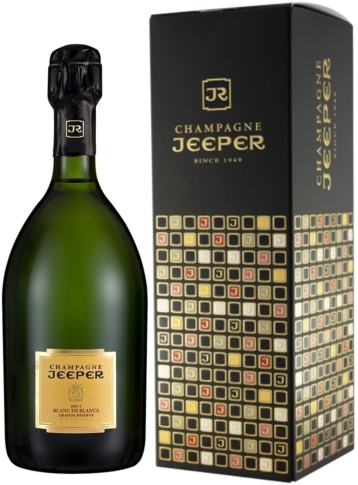 Champagne Jeeper, Blanc de Blancs Grand Reserve Brut, Champagne — изысканное шампанское, настоящие врата в мир гастрономии благодаря его прекрасной утонченности и универсальности. Шампанское создается в стиле "blanc de blancs" исключительно из винограда сорта Шардоне, который выращивается на виноградниках Шампани, где встречаются океанический и континентальный климаты. Лозы высажены преимущественно на известняковых почвах. Виноград всегда собирается исключительно вручную и тщательно сортируется. По завершении первичной ферментации и яблочно-молочного брожения базовое вино смешивается с резервным (около 40%), выдержанным в бургундских дубовых бочках на протяжении 2-х лет. Вторичная ферментация и созревание шампанского на осадке проходят в бутылках в соответствии с классическим методом. Выдержка в бутылках на тонком осадке длится не менее 5-ти лет. После дегоржажа дозировочный ликер добавляется в количестве 7 г/л.