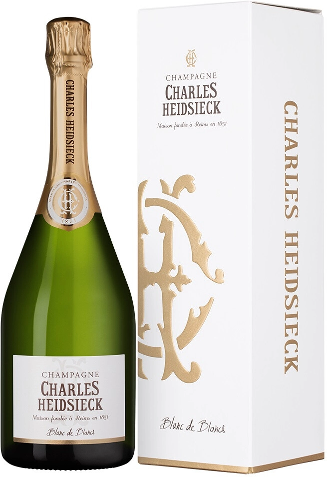 Charles Heidsieck, Blanc de Blancs Brut — роскошное белое шампанское, в производстве которого виноделы используют виноград сорта Шардоне. Ягоды произрастают на 15 участках в субрегионах Oger, Vertus, Montgueux, Sezannais, Villers-Marmery и Trepail. Сбор урожая осуществляется вручную в момент оптимальной спелости ягод, на винодельне плоды подвергаются мягкому прессованию с последующей ферментацией, проходящей частично в чанах из нержавеющей стали, частично — в старых барриках из французского дуба. Вторичная ферментация проводится традиционным методом в бутылках. Выдерживается шампанское на осадке на протяжении 36-48 месяцев.