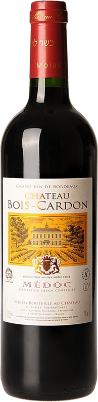 Chateau Bois-Cardon — красное сухое вино, создаваемое из традиционного для Бордо бленда сортов Каберне Совиньон и Мерло. Вино названо в честь места своего происхождения — Шато Буа-Кардон, которое располагается в известном винодельческом регионе Франции — Бордо. Замок был построен в примерно в 1830 году Филиппом Делакурт, лордом Бордье в архитектурном стиле усадеб XIX века. Усадьба находится неподалеку от деревни Валейрак, у устья реки Жиронда. Близость водоема положительно сказывается на вегетации винограда, не только обеспечивая постоянный доступ влаги, но и влияя на параметры температуры и влажности воздуха, что довольно важно для созревания ягод. Винификация осуществляется традиционным способом в стальных резервуарах при контролируемой температуре. Выдерживается Шато Буа Кардон 12 месяцев в дубовых бочках. Вино официально признано кошерным, то есть процессы выращивания винограда, винификации и даже бутилирования вина осуществлялись в соответствии с критериями "кашрута". Это значит, что вино разрешено для употребления иудеями, "соблюдающими субботу".