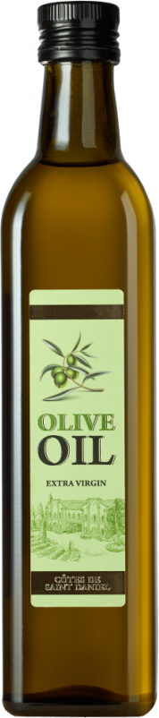 Chateau Cotes de Saint Daniel, Olive Oil Extra Virgin — оливковое нерафинированное масло первого отжима, которое производится из оливок, выращенных в поселке Даниловка, на южном берегу Крыма. Масло создается с соблюдением всех стандартов для сохранения полезных свойств исходного сырья. Крымское масло производится в ограниченном количестве, не превышающем 500 л в год. Оливковое масло — незаменимый компонент полноценного рациона и многих диет.