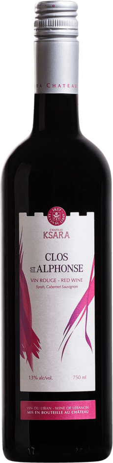 Clos St Alphonse от Chateau Ksara — универсальное вино с фруктовым характером. Купаж вина представлен сортами Сира и Каберне Совиньон. Виноград собирается вручную на виноградниках долины Бекаа, где участки расположены на средней высоте 1000 метров над уровнем моря. На виноградниках не используются пестициды и гербициды, акцент делается на органические методы ведения хозяйства. Виноград собирается вручную и очищается от гребней. Сира подвергается краткой мацерации, чтобы сохранить свежесть, в то время как Каберне Совиньон — длительной, чтобы подчеркнуть длину и элегантность. Далее сок-самотек и сок, полученный путем прессования подвергают малолактической ферментации в цементных чанах XIX века. После малолактической ферментации вино выдерживается в тех же чанах на протяжении 14-18 месяцев перед смешиванием. Лучше всего "Кло Сент Альфонс" пить в течение двух лет после сбора урожая, но при правильном хранении его потенциал составляет 3-4 года.