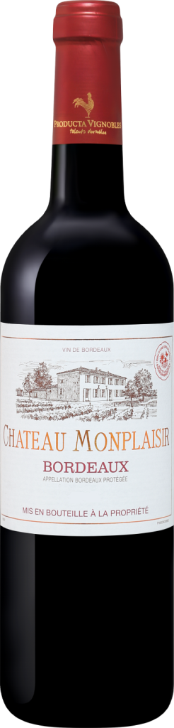 Красное сухое вино Chateau Monplaisir, Bordeaux изготавливается из типичных бордоских сортов винограда Каберне Совиньон, Мерло и Каберне Фран. После сбора урожая по достижении ягодами оптимальной спелости виноград измельчается, далее стартует алкогольная ферментация при контролируемой температуре в резервуарах из нержавеющей стали, длящаяся две-три недели. По окончании процессов винификации часть вина выдерживается в емкостях из нержавеющей стали, часть — в бетонных чанах.