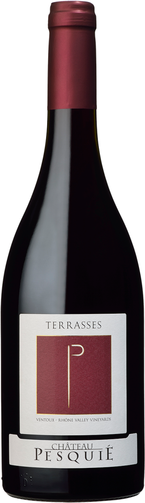 Chateau Pesquie, "Terrasses" Rouge — интригующее красное вино, изготовленное из винограда сортов Гренаш и Сира, к которым в разные годы может добавляться небольшая доля других сортов. Так, в винтаж были включены Кариньяно, Сенсо, Мурведр и Марселан. Урожай собирается с семи различных терруаров, которые отличаются друг от друга составом почвы. Виноградники, расположенные на высоте 300 метров над уровнем моря, охватывают два мира. С одной стороны, виноградники греются под средиземноморским солнцем, а с другой — развиваются в прохладе Альп. Все методы ведения сельского хозяйства являются ручными и, с 2015 года, биодинамическими.
