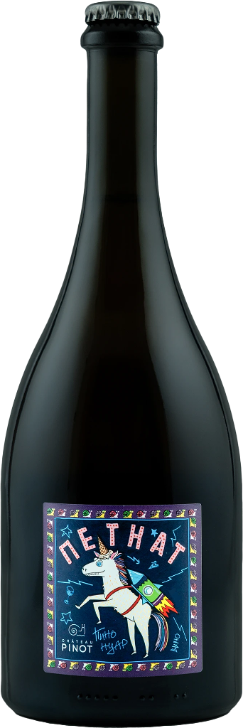 Chateau Pinot, Petnat Pinot Noir — яркое, оригинальное розовое игристое вино, созданное из винограда сорта Пино Нуар методом "ансестраль" ("дедовский метод"). Виноград ферментируется и мацерируется в стальных чанах, но еще до окончания брожения разливается в бутылки, где процесс ферментации завершается естественным путем. Игристое вино отлично сочетается с сырами, морепродуктами, блюдами из рыбы и легкими ягодными десертами.