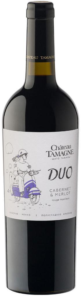 Duo, Rouge Semi-Sweet — красное полусладкое вино, в производстве которого используется виноград сортов Саперави и Красностоп, произрастающий на виноградниках Таманского полуострова. Винификация проводится традиционным для красных вин способом со строгим контролем температуры.