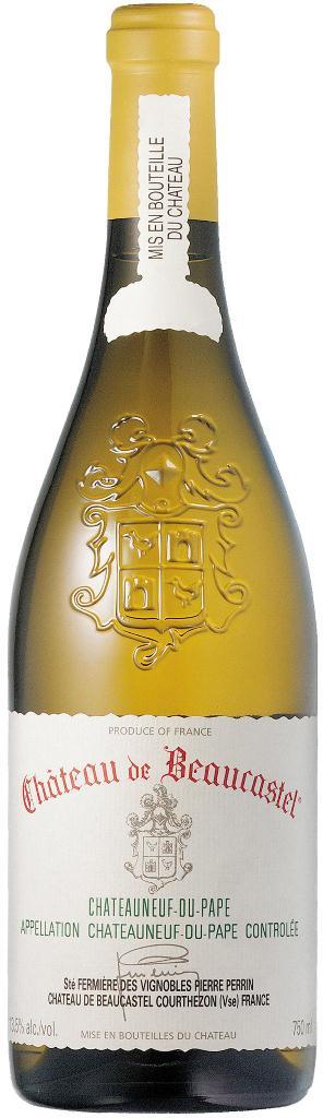 Chateau de Beaucastel, Blanc, Chateauneuf-du-Pape — великолепное белое вино, не сильно сложное, но выдающееся. В купаже вина доминирует виноград сорта Руссан, на долю которого приходится 80%. Также в купаж входят и другие белые сорта винограда (Гренаш Блан, Пикардан, Бурбуленк и Кларет), традиционные для Долины Рона. Сезон был удивительным для региона, с атипичной погодой — мягкой и влажной зимой, жаркой и сухой весной, влажным, умеренно теплым летом. Сбор белого винограда проходил под ярким солнцем. Белое "Шато де Бокастель" прекрасно и необыкновенно сочно уже в молодом возрасте, при этом вино имеет хороший потенциал хранения — 10 и более лет.