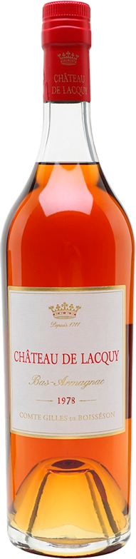 Bas-Armagnac du Chateau de Lacquy, 1978 — превосходный миллезимный арманьяк, обладающий пряно-древесным ароматом и мощным вкусом выдающейся длины. Арманьяк был создан из винограда сорта Бако, который собрали в начале октября под ярким солнцем. Плоды показали отличное здоровье, из него получилось вино, которое имело довольно высокое содержание сахара. Дистилляция состоялась в ноябре 1978 года в собственных перегонных кубах хозяйства. Выдержка арманьяка проходила в 420-литровых дубовых бочках (наполовину новых, наполовину старше 7 лет) в подвалах Шато де Лаки, которые являются одними из старейших и лучших в регионе. При производстве арманьяка не используются холодная фильтрация, красители и искусственные добавки.