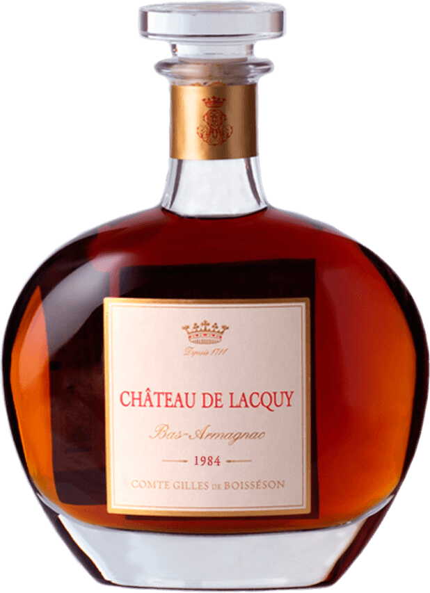 Chateau de Lacquy, Bas-Armagnac, 1984 — превосходный миллезимный арманьяк, обладающий цветочно-древесным ароматом и мощным медовым вкусом выдающейся длины. Арманьяк был создан из винограда сорта Бако. Из него получилось вино, которое имело довольно высокое содержание сахара. Дистилляция в собственных перегонных кубах хозяйства состоялась в ноябре 1974 года. Выдержка арманьяка проходила в 420-литровых дубовых бочках (наполовину новых, наполовину старше 7 лет) в подвалах Шато де Лаки, которые являются одними из старейших и лучших в регионе. При производстве арманьяка не используются холодная фильтрация, красители и искусственные добавки.