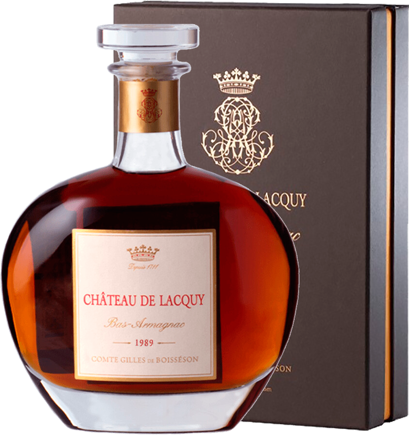 Chateau de Lacquy, Bas-Armagnac, 1989 — превосходный миллезимный арманьяк, обладающий цветочно-древесным ароматом и мощным медовым вкусом выдающейся длины. Арманьяк был создан из винограда сорта Бако. Из него получилось вино, которое имело довольно высокое содержание сахара. Дистилляция в собственных перегонных кубах хозяйства состоялась в ноябре 1974 года. Выдержка арманьяка проходила в 420-литровых дубовых бочках (наполовину новых, наполовину старше 7 лет) в подвалах Шато де Лаки, которые являются одними из старейших и лучших в регионе. При производстве арманьяка не используются холодная фильтрация, красители и искусственные добавки.