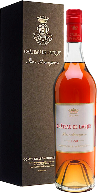 Chateau de Lacquy, Bas-Armagnac, 1990 — превосходный миллезимный арманьяк, обладающий тонким, но сложным ароматом и округлым, сбалансированным вкусом потрясающей длительности. Арманьяк был создан из винограда сорта Бако. Из него получилось вино, которое имело довольно высокое содержание сахара. Дистилляция состоялась в ноябре 1990 года в собственных перегонных кубах хозяйства. Выдержка арманьяка проходила в 420-литровых дубовых бочках (наполовину новых, наполовину старше 7 лет) в подвалах Шато де Лаки, которые являются одними из старейших и лучших в регионе. При производстве арманьяка не используются холодная фильтрация, красители и искусственные добавки.