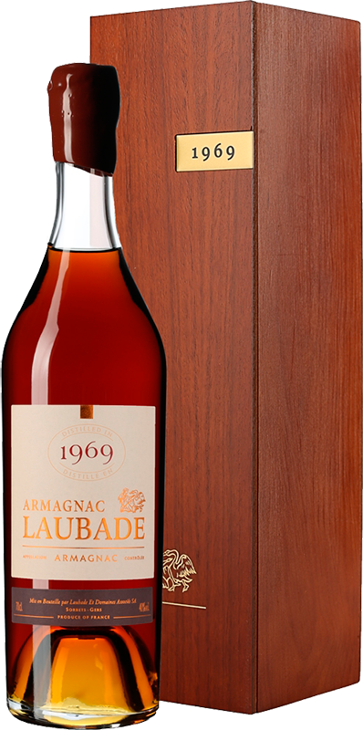 Ассамбляж "Chateau de Laubade 1969" состоит из двух сортов — Уни Блан (40%) и Бако (60%), выращенных в центре области Ба Арманьяк на виноградниках, занимающих 105 га. Арманьяк урожая исключительно 1969 года. Выдержка — в бочках до даты бутилирования, указанной на контрэтикетке. Арманьяк 1969 года — великолепный напиток, который завоевал золотую медаль на World Spirits Competition 2006 в Сан-Франциско и оценку "Пять звезд" от Wine Enthusiast. Арманьяк представлен в красивой деревянной коробке, которая подчеркивает его изысканность.