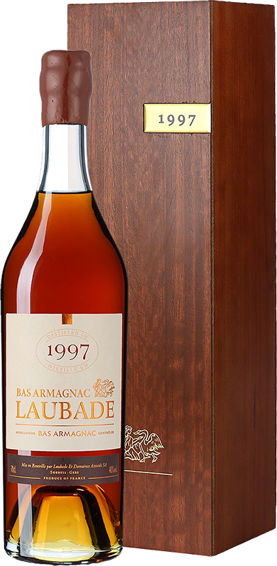 Основные сорта винограда для ассамбляжа Chateau de Laubade, 1997 — Уни Блан и Бако, выращенные в Нижнем Арманьяке. Это арманьяк урожая исключительно 1997 года. Выдержка арманьяка — в бочках до даты бутилирования, указанной на контрэтикетке. Арманьяк 1997 года — великолепный напиток с восхитительным ароматом и богатым вкусом. Арманьяк представлен в красивой деревянной коробке, которая подчеркивает его изысканность.