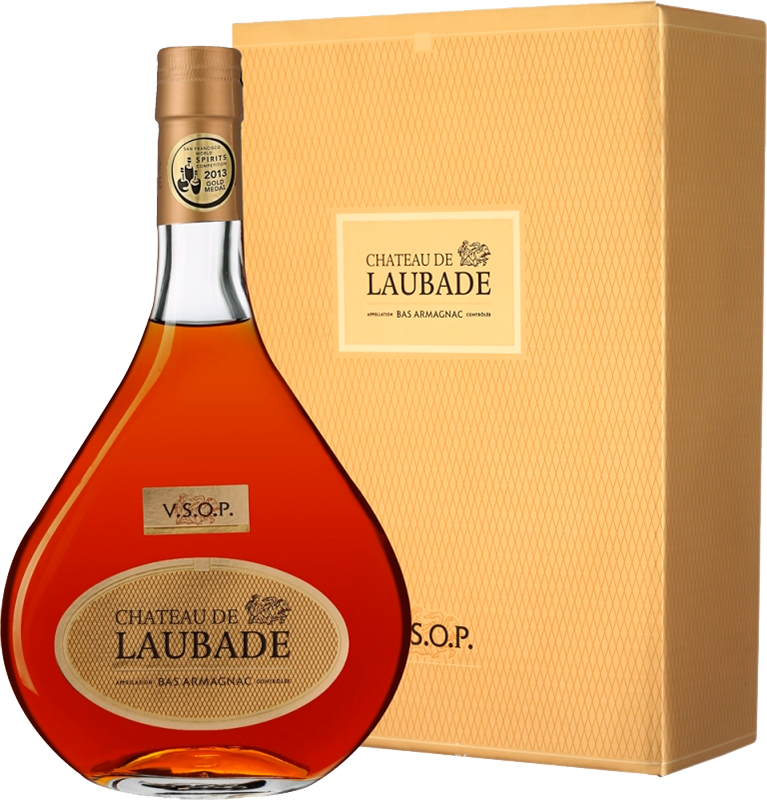 Арманьяк Chateau de Laubade, VSOP обладает элегантным, богатым, сложным вкусом, который соответствует наивысшему качеству. Он произведен из сортов Уни Блан, Бaкo, Коломбар, Фоль Бланш в результате совмещения различных коньячных спиртов, младшему из которых 6 лет.