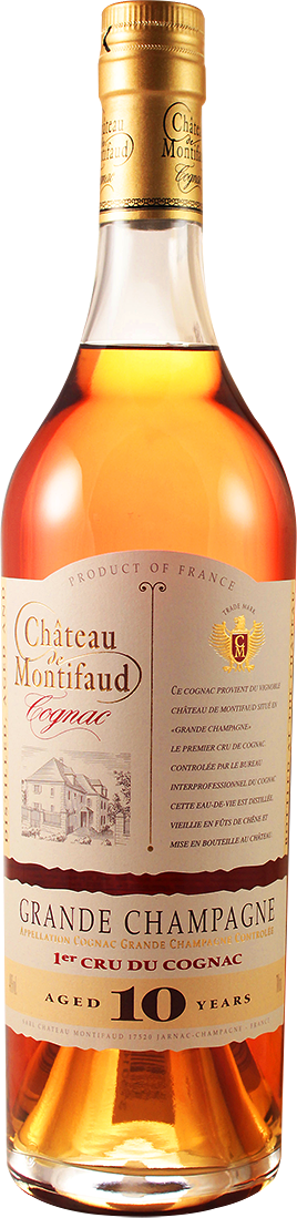 Chateau de Montifaud 10 Years Old — богатый, полный коньяк, в производстве которого используется виноград сортов Уни Блан, Коломбар и Фоль Бланш, произрастающий на винограднике в Гранд Шампань. Выдержка коньяка осуществлялась в старых бочках в течение 10 лет в подвалах Шато де Монтифо. Коньяк "Chateau de Montifaud" 10 Years Old является отличным дижестивом.