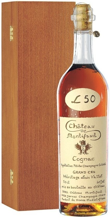 Chateau de Montifaud "Heritage Louis Vallet" 50 Years Old — роскошный, восхитительный коньяк, созданный из коньячных спиртов, средний возраст которых насчитывает 50 лет. Перегонка спиртов осуществлялась в период с 1947 по 1953 год в старых дубовых бочках. Коньяк "Наследие Луи Валле" обладает богатым ароматом с нотами кураги и миндаля, и мягким, пьянящим вкусом с долгим послевкусием.