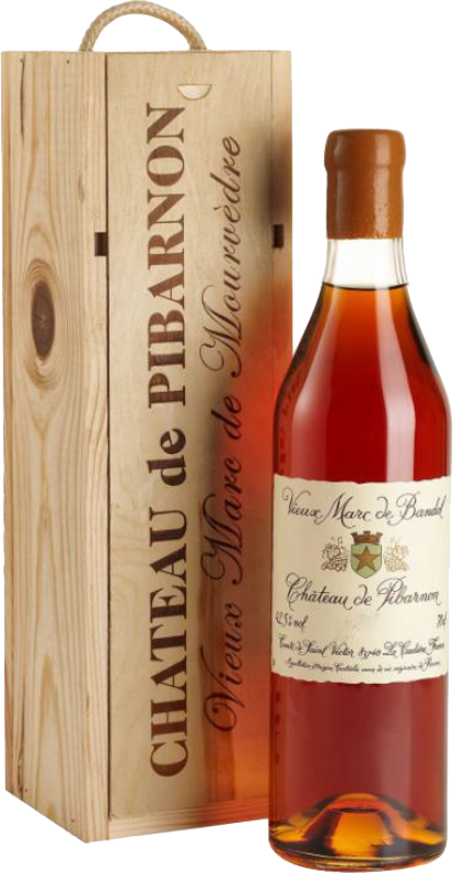 Бренди "Vieux Marc de Bandol", 1992 изготовлен из выжимок винограда сорта Мурведр, который придает напитку особую бархатистость, выразительность и глубину. Виноградники расположены в самом центре Прованса, аппелласьон славится обилием жарких дней, что позволяет ягодам напитаться силой и ароматом. Виноград высаживается на высоте около 420 метров над уровнем моря, что позволяет ему не страдать от туманов и ветров и полностью вызревать.