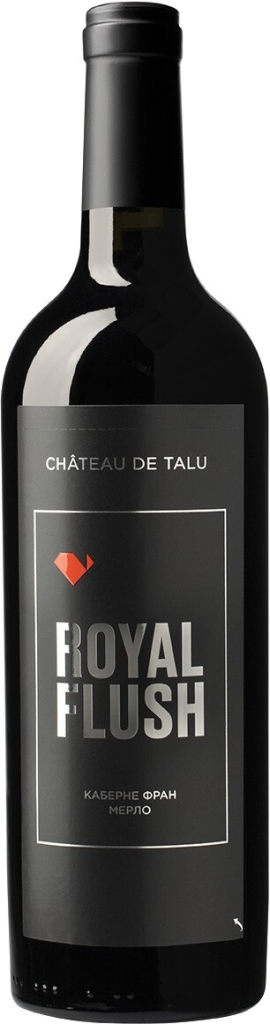 Chateau de Talu, Royal Flush, Cabernet Franc-Merlot — элегантное красное сухое вино из винограда сортов Каберне Фран и Мерло, выращенного на виноградниках Краснодарского края. Виноград собирается вручную и винифицируется раздельно с использованием принципов гравитационного виноделия. Затем вино из Мерло созревает 22 месяца в новых барриках из французского дуба, вино из Каберне Фран выдерживается частично в стальных чанах и частично во французских дубовых бочках, 20% из которых — новые. Перед розливом вина смешиваются в точно выверенных пропорциях.
