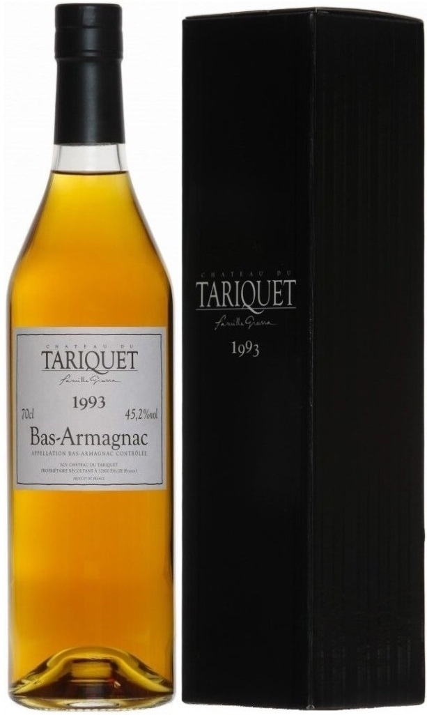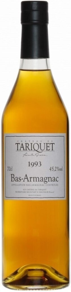 Chateau du Tariquet, 1993 — миллезимный арманьяк, обладающий приятным, хорошо структурированным вкусом и соблазнительным ароматом. В его производстве используется смесь спиртов, полученная путем перегонки вин из винограда сортов Уни Блан (60%) и Бако (40%). Виноград произрастает на виноградниках хозяйства в Ба-Арманьяк. Шато дю Тарике 1993 года является отличным дижестивом, его также можно сочетать с кофе или сигарой.