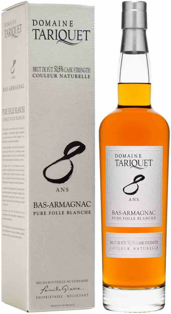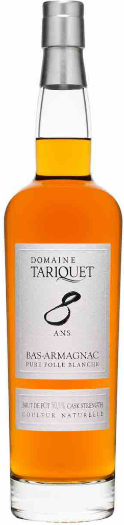 Domaine Tariquet, Folle Blanche, 8 years — арманьяк 8-летней выдержки, который является отличным дижестивом, а также гармонично сочетается с десертами. В его производстве используются спирты, полученные методом перегонки вин из винограда сорта Фоль Бланш. Выдержка арманьяка осуществляется в дубовых бочках в подвалах винного дома Тарике.