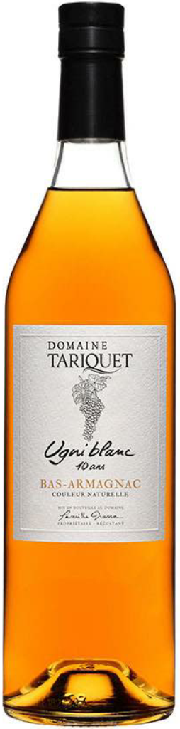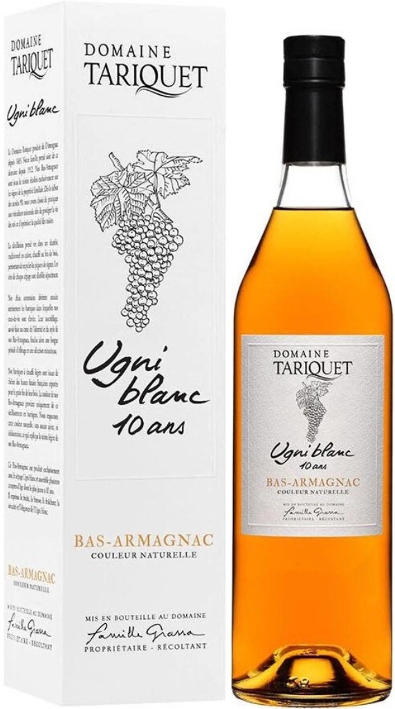 Domaine Tariquet, Ugni Blanc, 10 years — арманьяк, созданный исключительно из Уни Блан. Этот 10-летний релиз от Домэн Тарике демонстрирует подход "от лозы до бутылки", где каждый этап производства контролируется на месте. Вино перегоняется в медных аламбиках по традиционной непрерывной схеме, что позволяет бережно сохранить сортовой характер спирта.