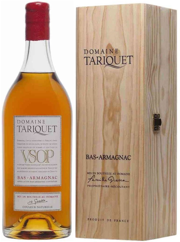 Domaine Tariquet VSOP — мягкий, округлый арманьяк, который производится из спиртов, полученных методом перегонки вин из винограда сортов Уни Блан (60%) и Бако (40%). Выдерживается арманьяк в подвалах дома Тарике в дубовых бочках не менее 7 лет.