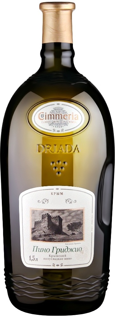 Столовое белое полусладкое вино Пино Гриджио Крымский из линейки "Cimmeria" изготавливается из винограда сорта Пино Гриджио, выращенного на территории Республики Крым, по классической технологии с принудительной остановкой брожения по достижении оптимального уровня остаточного сахара. Вино обладает приятным ароматом и гармоничным, сладковатым вкусом. "Киммерия" Пино Гриджио Крымский отлично гармонирует с рыбой, морепродуктами, белым мясом, птицей, закусками и десертами, станет хорошим выбором для пикника.