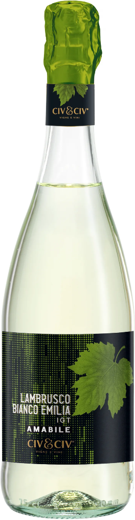 Civ & Civ, Lambrusco Bianco Emilia, Amabile — итальянское полусладкое вино, которое создают из сортов Монтуни, Альбана и Треббьяно, выращиваемых в регионе Северной Италии — Эмилия-Романья. После вторичной ферментации вино разливают под давлением в бутылки согласно методу Шарма. Такая технология способствует появлению мерцающего, игривого перляжа при наполнении бокала.