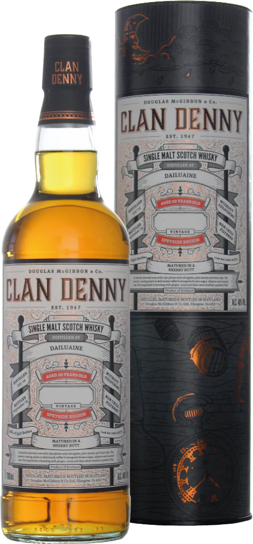 Clan Denny, Dailuaine — односолодовый шотландский виски из Спейсайда, выдержанный в одной бочке из-под хереса в течение девяти лет. Виски рекомендуется сервировать в качестве дижестива, в чистом виде, с охлаждающими камнями или кусочками льда.