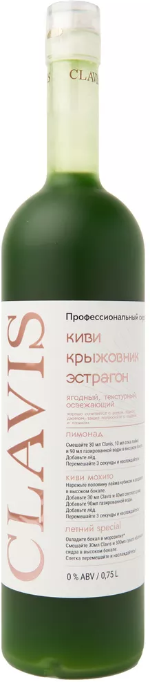 Линейка "Клавис" расширилась за счет появления в ассортименте профессиональных сиропов. Один из них "Clavis" Kiwi Gooseberry Tarragon! Яркий вкус киви, крыжовника и эстрагона, а также нежная сиропообразная консистенция. Сироп, как и вся продукция "Clavis", производится на основе натуральных компонентов, таких как концентрированный виноградный сок и травяные настои. Натуральные ароматизаторы в составе абслютно безвредны для организма. Одна бутылка рассчитана на 12 порций коктейлей.