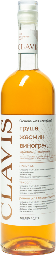 Clavis, Pear-Jasmine-Grapes — оригинальный кордиал с фруктово-цветочными оттенками во вкусе и аромате. Отлично сочетается с джином, водкой, ромом, текилой, игристым вином или содовой.