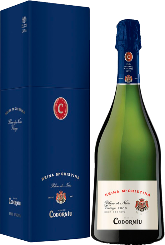 Белое игристое вино "Reina Maria Cristina" Blanc de Noir Brut Reserva названо в честь испанской королевы-регента Марии-Кристины, которая во время своего правления сделала дом "Codorniu" официальным поставщиком Испанского Королевского двора.