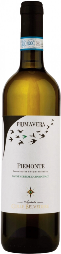 Colle Belvedere, Primavera, Piemonte — итальянское белое сухое вино из региона Пьемонт, одного из самых известных и характерных регионов во всей Италии. Пьемонт расположен у подножия Западных Альп, которые окружают его северную и западную стороны и образуют естественную границу с Провансом. Именно здесь, под палящим летним солнцем, холодными пронизывающими осенними ветрами и зимними туманами выращивается виноград сортов Кортезе и Шардоне, которые используют для изготовления вина "Примавера". Виноград Кортезе популярен тем, что именно из него рождаются одни из самых дорогих белых вин региона, отличительной чертой которых является выраженный освежающий эффект. Шардоне придает вину элегантность и утонченность. Урожай собирается вручную в начале сентября. На винодельне плоды деликатно прессуются и подвергаются ферментации, проходящей в резервуарах из нержавеющей стали при температуре 14°С. Выдерживается вино в стальных емкостях на протяжении 5 месяцев.