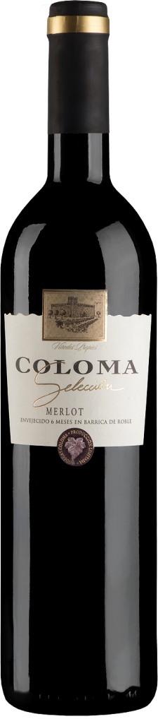 Coloma, Merlo Seleccion — богатое красное сухое вино, изготовленное из винограда сорта Мерло, который выращиваются на винограднике "Vina Amelia" в Эстремадуре, к юго-западу от Испании, на границе с Португалией. Виноградники Лузитании не понимают границ и простираются по обе стороны реки Гвадиана, которая объединяет и разделяет их. Почвы — аллювиальные, каменистые и неглубокие. Плоды развивают исключительную индивидуальность и собственный стиль, раскрывая существование уникального микроклимата и состава земли. Урожай собирается вручную исключительно в ночное время суток. Винификация производится по традиционной для красных вин технологии. Затем Мерло выдерживается в дубовых бочках в течение 6 месяцев.