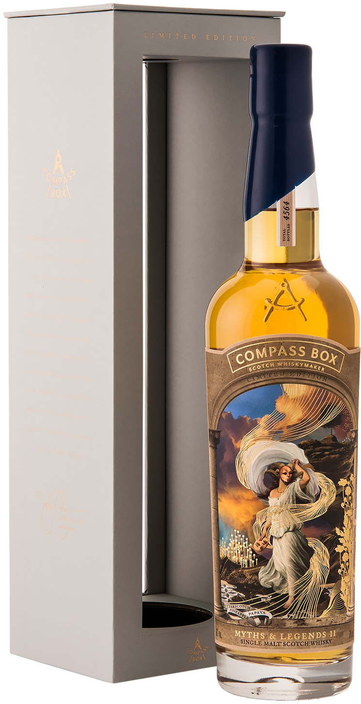 Myths& Legends II сочетает в себе односолодовые виски разного возраста с одной дистиллерии в регионе Спейсайд. Помимо ароматов тропических фруктов и ирисок этот виски насыщен пряностью и перечными тонами. Эту уникальную органолептику напиток приобретает не за счёт местоположения в регионе Спейсайд, а благодаря технологическим особенностям конкретной дистиллерии, используемым на разных этапах производства, таких как перегонка, выдержка и многих других, а помимо этого наш тщательный выбор определённых бочек для конечного купажа, вот они – наиболее важные факторы, повлиявшие на вкус напитка. Ключ к разгадке аромата и вкуса всегда находится в вашем стакане, а не в регионе, где построено здание дистиллерии.