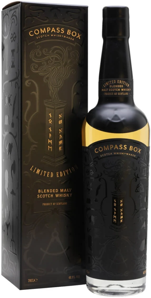 Виски "No Name", выпущенный лимитированной серией, — один из самых торфяных среди виски компании Компасс Бокс. Его интригующий, богатый аромат, наполненный торфяными и дымными нотами, создан с помощью односолодового виски из винокурни Ардберг, которая расположена на южном побережье шотландского острова Айла. Дистиллят выдерживают в бочках из американского дуба, обожженных дважды. Чуть более 10% купажа пришлось на солодовый виски, выдержанный в стандартных бочках повторного заполнения. 13,4% объема приходится на спирты из деревни Брора, которые выдерживали более 4-х лет в обожженных бочках из французского дуба. Они привнесли в характер напитка восковые и фруктовые оттенки. "Ноу Нейм" — виски, оставшийся без названия, ведь он скажет все за себя.